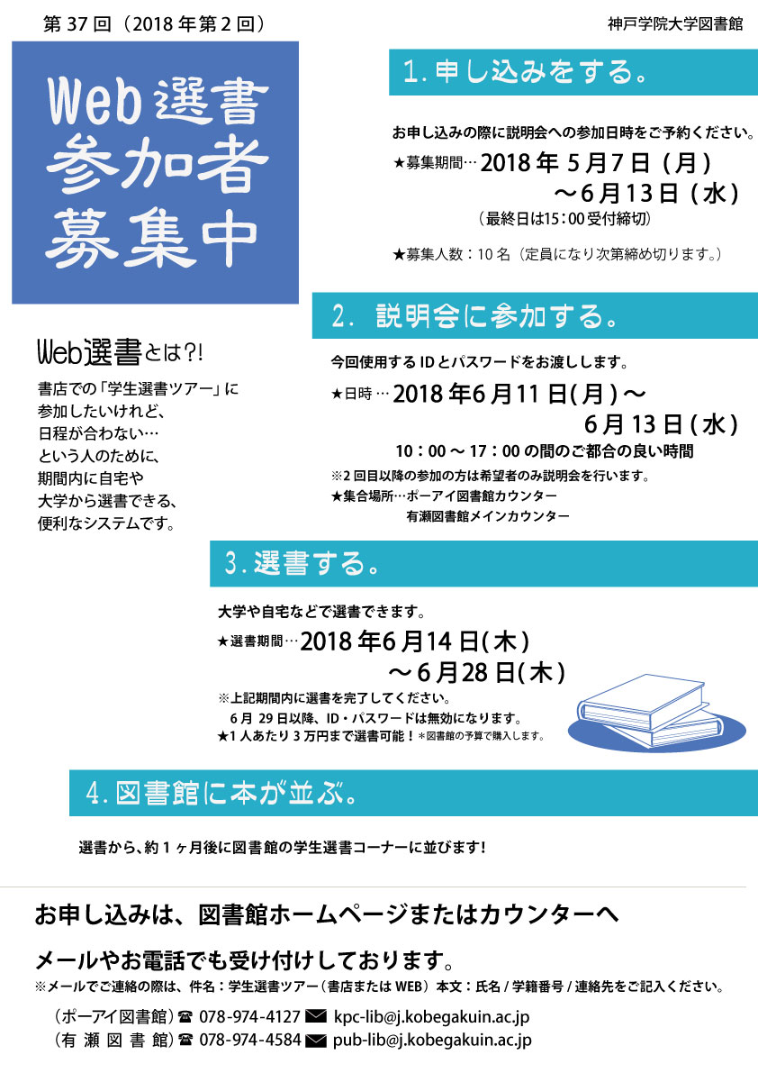 第37回(2018年第2回)ウェブ選書参加者を募集しています。