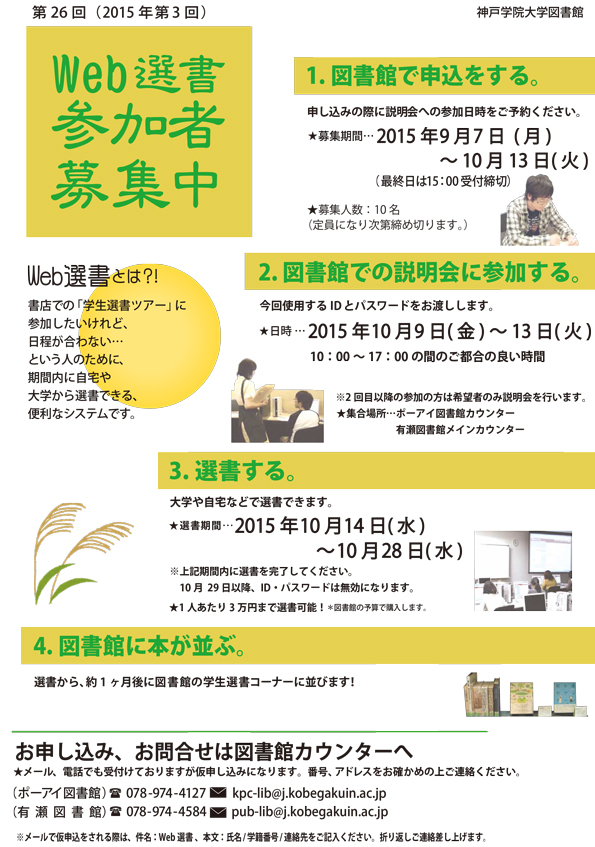 第26回(2015年第3回)ウェブ選書参加者を募集しています。