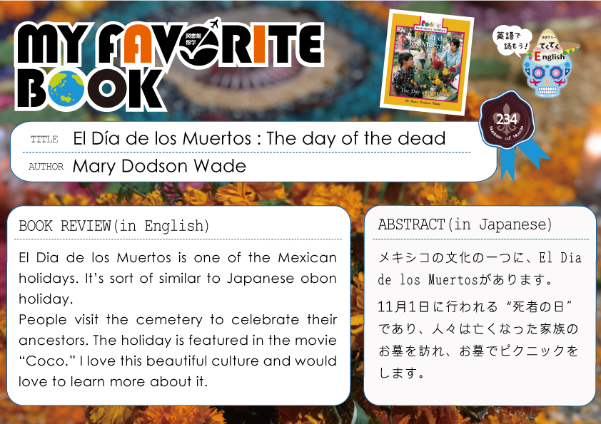 My Favorite Book(安田有紀子先生)El Día de los Muertos : The day of the dead※ポーアイ図書館2階図書館留学コーナーにて展示しています。※有瀬図書館新館1階A図書館留学コーナーに展示しています。