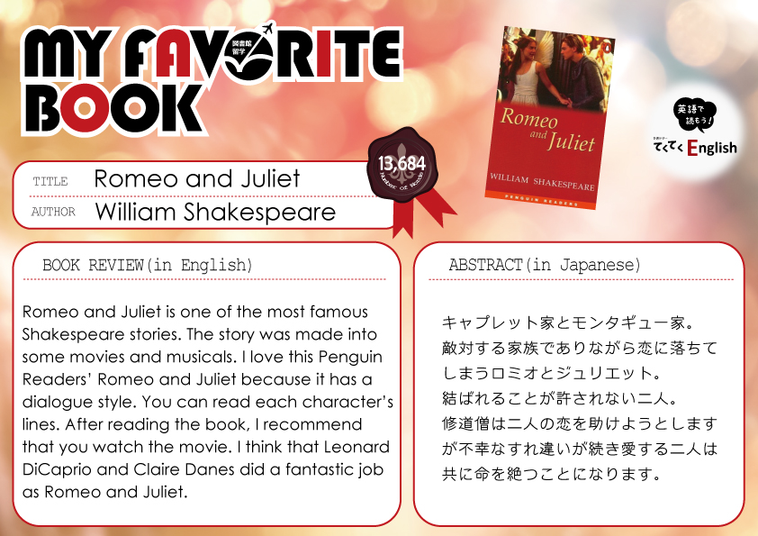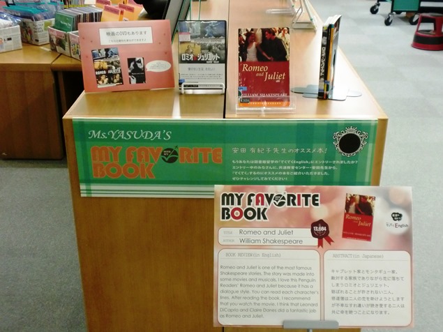 一覧へ 【全館】〈終了〉My Favorite Book「Romeo and Juliet」を開催しています 投稿日時: 2017/11/10 図書館管理者 My Favorite Book(安田有紀子先生)Romeo and Juliet※ポーアイ図書館2階図書館留学コーナーにて展示しています。※有瀬図書館新館1階A図書館留学コーナーに展示しています。