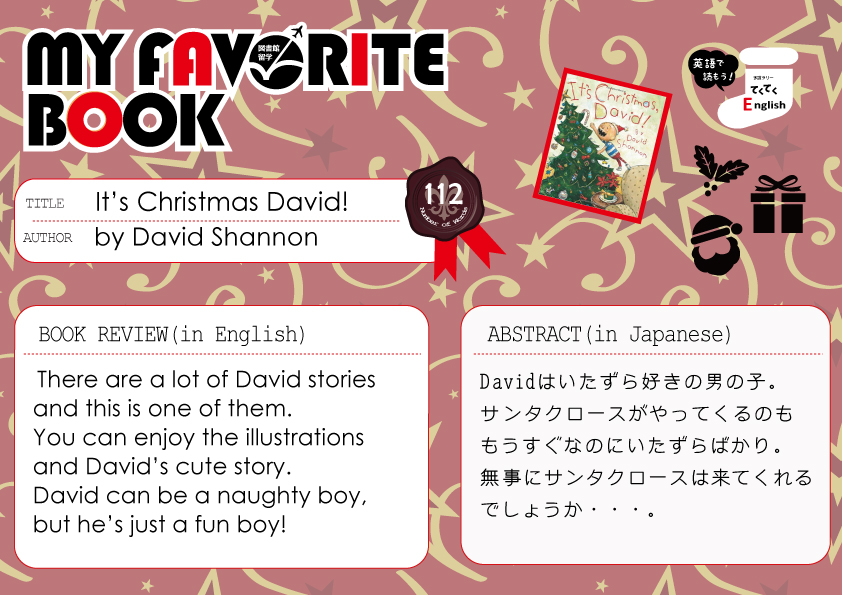My Favorite Book(安田有紀子先生)It's Christmas David!※ポーアイ図書館2階図書館留学コーナーにて展示しています。※有瀬図書館新館1階A図書館留学コーナーに展示しています。