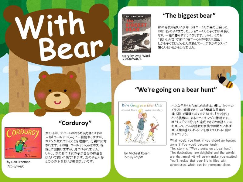 一覧へ 【有瀬館】〈終了〉てくてくSelection「With Bear」を開催しています 投稿日時: 2022/07/01 図書館管理者 てくてくSelectionWith Bear ※有瀬図書館新館1階Aにて展示しています。