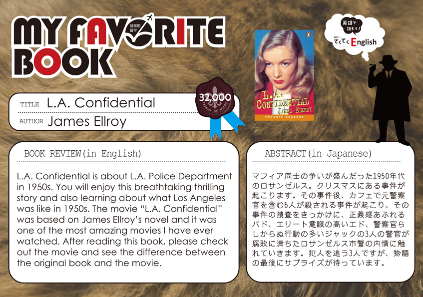 一覧へ 【有瀬館】My Favorite Book「L.A.Confidential」を開催しています 投稿日時: 2016/02/02 図書館管理者 My Favorite Book(安田有紀子先生)L.A.Confidential※有瀬館新館1階Aにて展示しています。