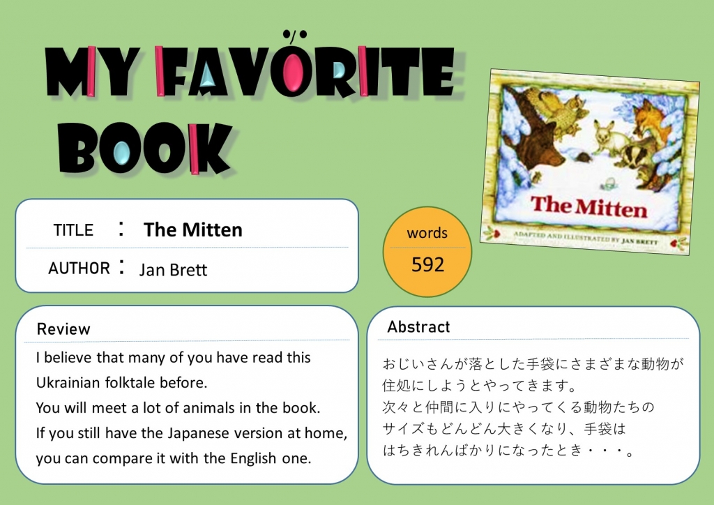 一覧へ 【全館】〈終了〉My Favorite Book「The Mitten」を開催しています 投稿日時: 2022/04/05 図書館管理者 My Favorite Book(安田有紀子先生)The Mitten※ポーアイ図書館2階図書館留学コーナーにて展示しています。※有瀬図書館新館1階A図書館留学コーナーに展示しています。