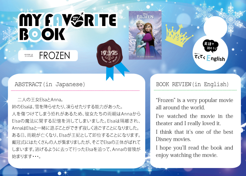 一覧へ 【全館】〈終了〉My Favorite Book「FROZEN」を開催しています 投稿日時: 2018/01/09 図書館管理者 My Favorite Book(安田有紀子先生)FROZEN※ポーアイ図書館2階図書館留学コーナーにて展示しています。※有瀬図書館新館1階A図書館留学コーナーに展示しています。