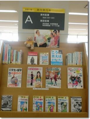 一覧へ 2013/07/24 図書館留学 2013年7月~展示「留学しよう!」を開催しています 投稿日時: 2013/09/10 図書館管理者 留学しよう!期間:2013年7月~実施場所 :【有瀬館】 新館1階A 図書館留学コーナー