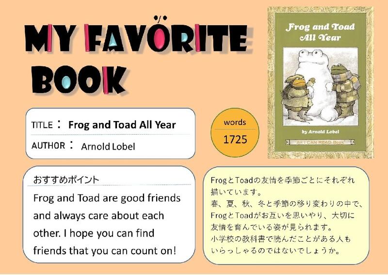 My Favorite Book(安田有紀子先生)Frog and Toad All Year※ポーアイ図書館2階図書館留学コーナーにて展示しています。※有瀬図書館新館1階A図書館留学コーナーに展示しています。