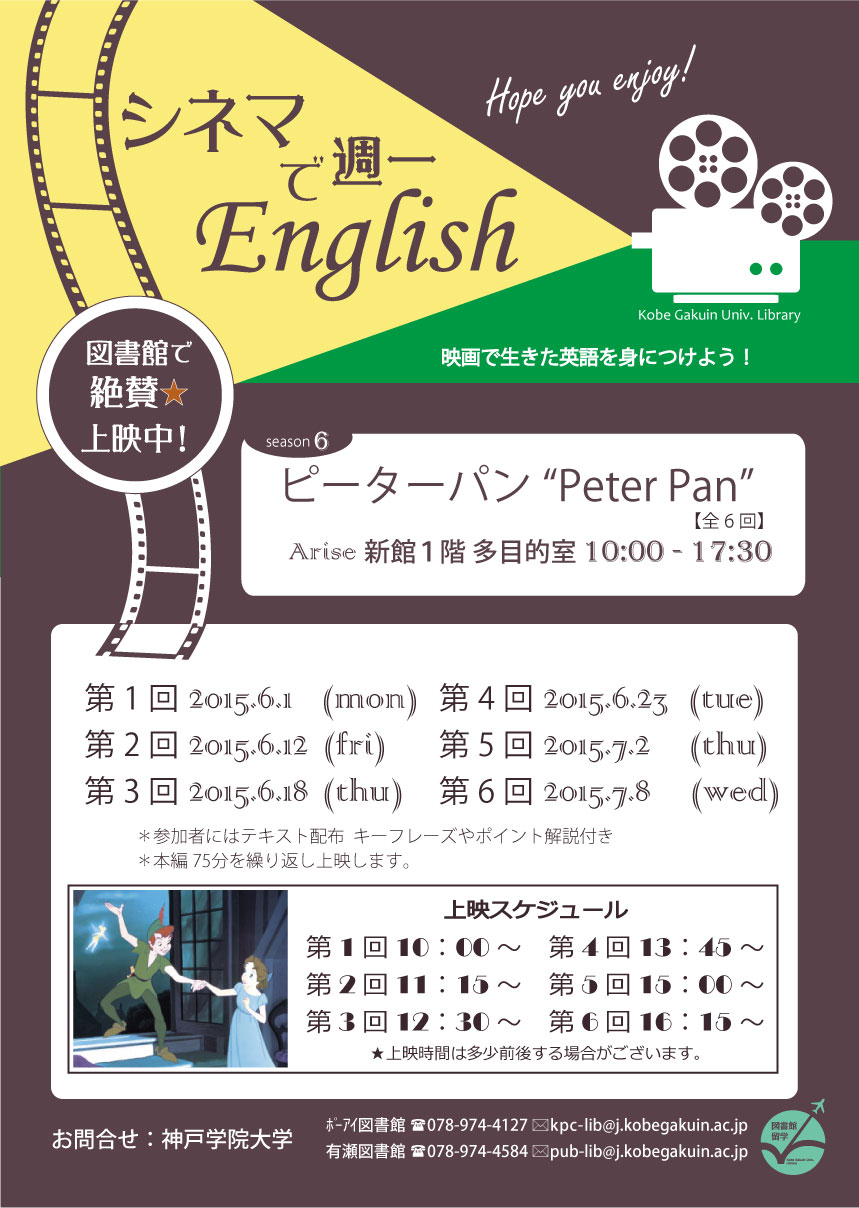 【有瀬館】〈終了〉シネマで週一English「ピーターパン」を開催します