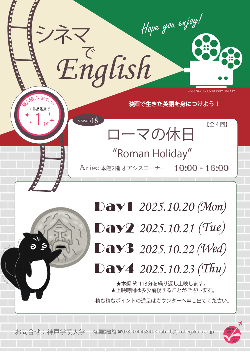 【有瀬館】〈終了〉 シネマでEnglish「ローマの休日」を開催します