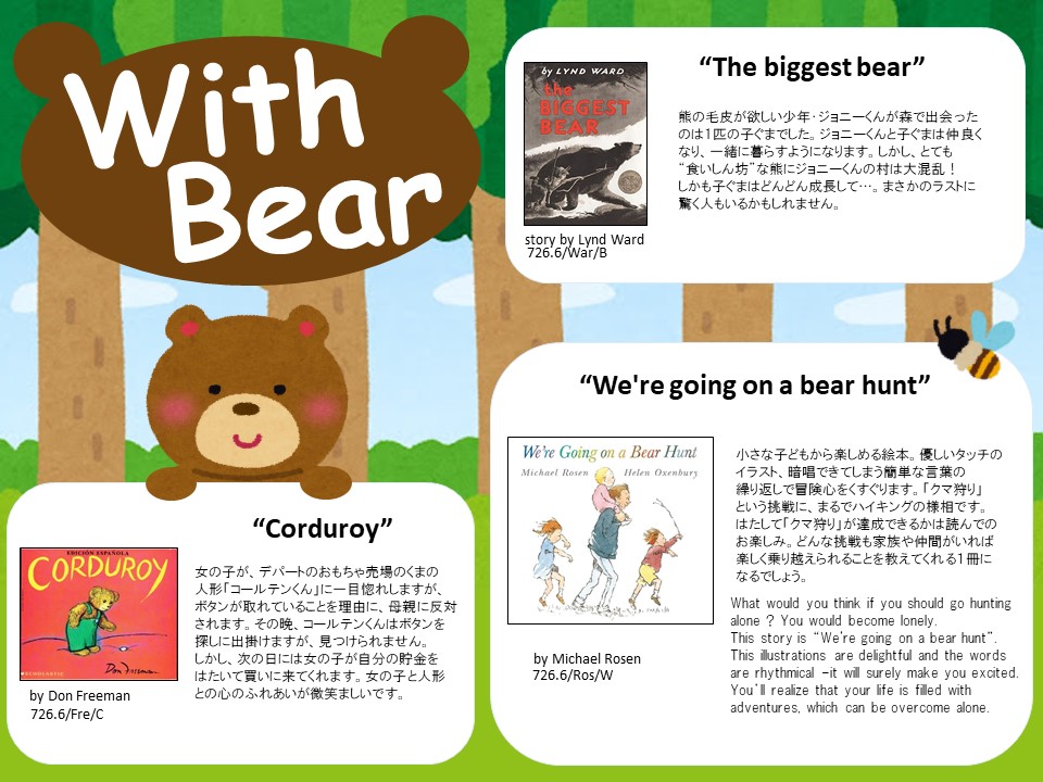 一覧へ 【ポーアイ館】〈終了〉てくてくSelection「With Bear」を開催しています 投稿日時: 2023/07/04 図書館管理者 てくてくSelectionWith Bear ※ポーアイ図書館2階図書館留学コーナーにて展示しています。