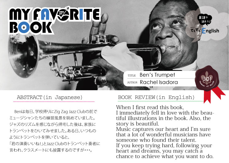 一覧へ 【有瀬館】〈終了〉My Favorite Book 「Ben's Trumpet」を開催しています 投稿日時: 2014/06/09 図書館管理者 My Favorite Book(安田有紀子先生)Ben's Trumpet ※有瀬図書館新館1階Aにて展示しています。