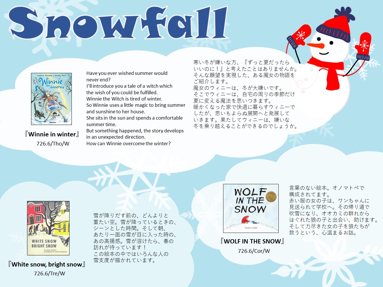 一覧へ 【有瀬館】〈終了〉てくてくSelection 「Snowfall」を開催しています 投稿日時: 2024/02/15 図書館管理者 てくてくSelectionSnowfall ※有瀬図書館新館1階図書館留学コーナーにて展示しています。