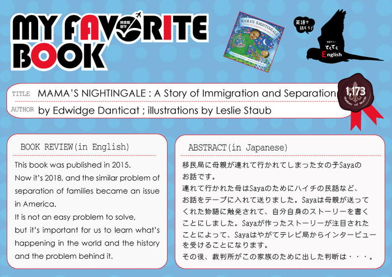 My Favorite Book(安田有紀子先生)MAMA'S NIGHTINGALE※ポーアイ図書館2階図書館留学コーナーにて展示しています。※有瀬図書館新館1階A図書館留学コーナーに展示しています。