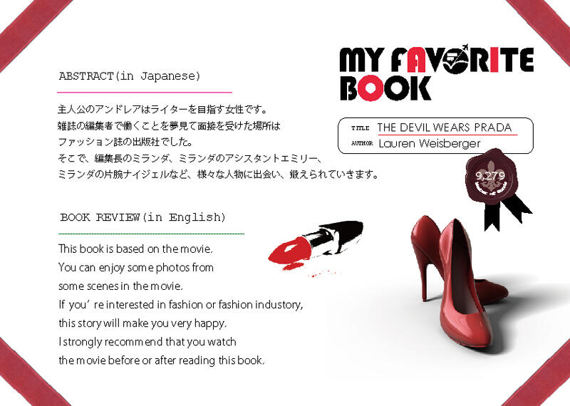 一覧へ 【有瀬館】〈終了〉My Favorite Book「THE DEVIL WEARS PRADA」を開催しています 投稿日時: 2014/09/24 図書館管理者 My Favorite Book(安田有紀子先生)THE DEVIL WEARS PRADA ※有瀬図書館新館1階Aにて展示しています。