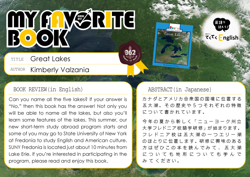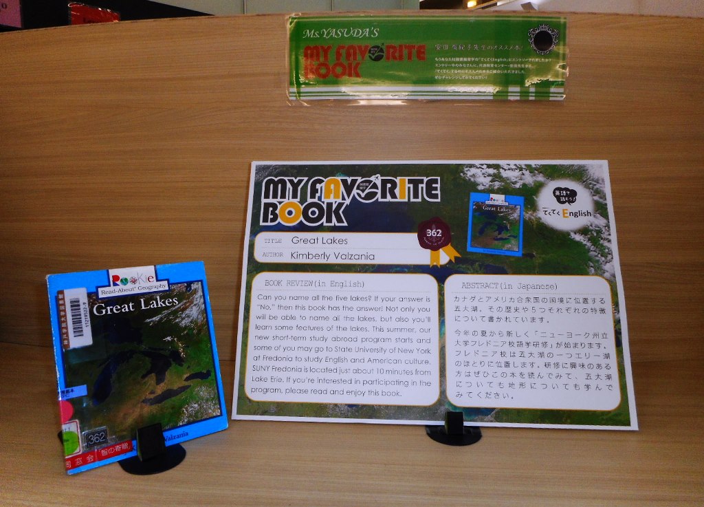 一覧へ 【全館】〈終了〉My Favorite Book「Great Lakes」を開催しています 投稿日時: 2018/04/07 図書館管理者 My Favorite Book(安田有紀子先生)Great Lakes※ポーアイ図書館2階図書館留学コーナーにて展示しています。※有瀬図書館新館1階A図書館留学コーナーに展示しています。