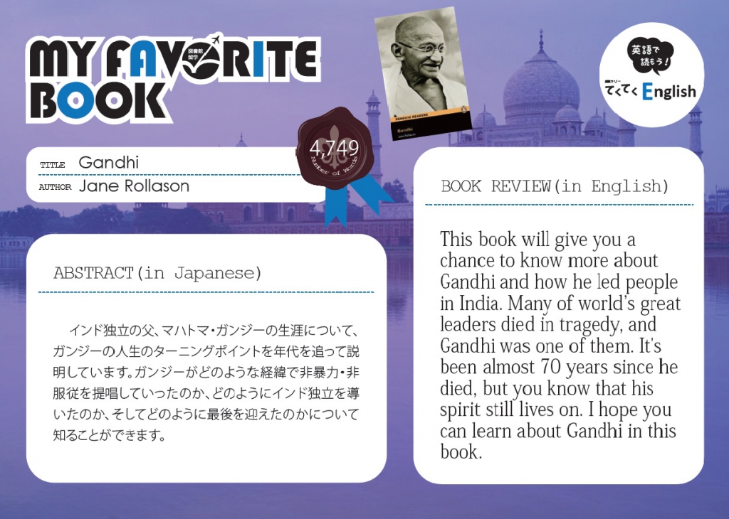 一覧へ 【全館】〈終了〉My Favorite Book「Gandhi」を開催しています 投稿日時: 2015/06/03 図書館管理者 My Favorite Book(安田有紀子先生)Gandhi※ポーアイ館2階図書館留学コーナーに展示しています。※有瀬館新館1階Aにて展示しています。