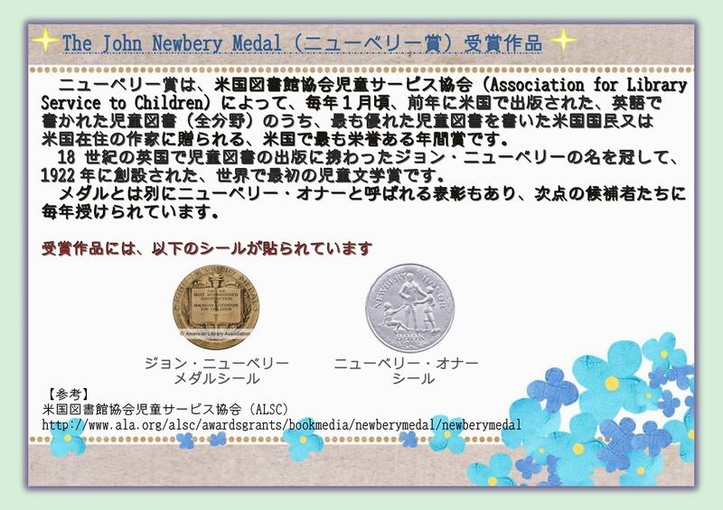 2013/06/01 図書館留学 ニューベリー賞受賞作品絵本を展示しています