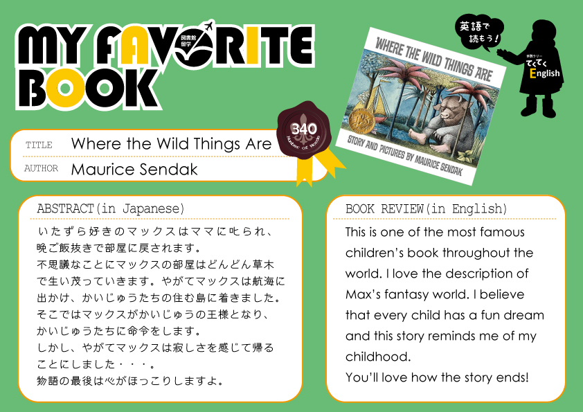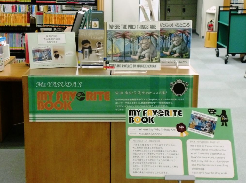 My Favorite Book(安田有紀子先生)Where the Wild Things Are※ポーアイ図書館2階図書館留学コーナーにて展示しています。※有瀬図書館新館1階A図書館留学コーナーに展示しています。
