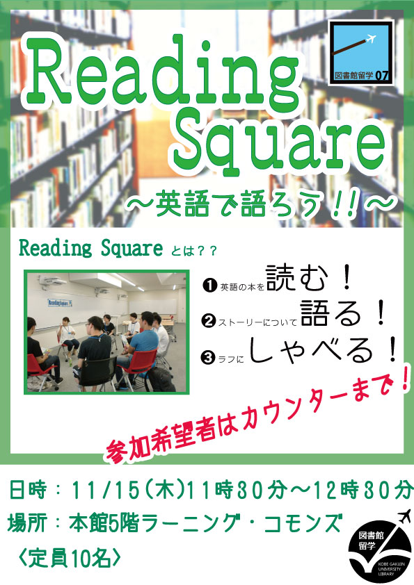【有瀬館】〈終了〉Reading Square~英語で語ろう!!~を開催します