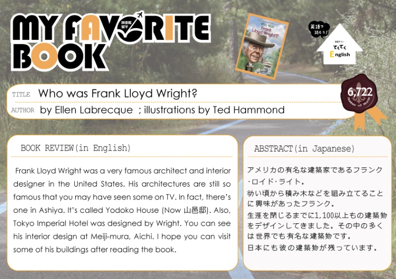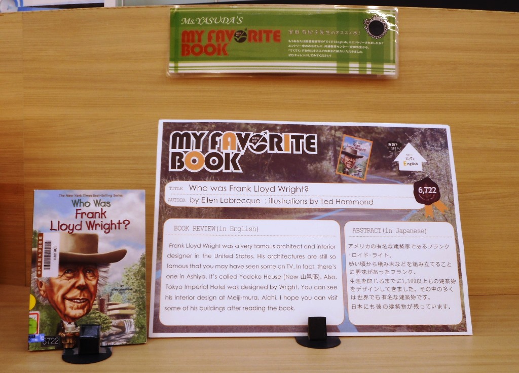 My Favorite Book(安田有紀子先生)Who was Frank Lloyd Wright?※ポーアイ図書館2階図書館留学コーナーにて展示しています。※有瀬図書館新館1階A図書館留学コーナーに展示しています。