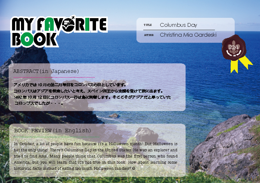 一覧へ 【有瀬館】〈終了〉My Favorite Book「Columbus Day」を開催しています 投稿日時: 2014/10/17 図書館管理者 My Favorite Book(安田有紀子先生)Columbus Day ※有瀬図書館新館1階Aにて展示しています。
