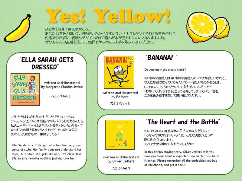 一覧へ 【有瀬館】〈終了〉てくてくSelection「Yes! Yellow!」を開催してます 投稿日時: 2021/01/08 図書館管理者 てくてくSelectionYes! Yellow! ※有瀬図書館新館1階Aにて展示しています。