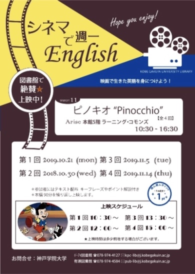 【有瀬館】〈終了〉シネマで週一English「ピノキオ」を開催します