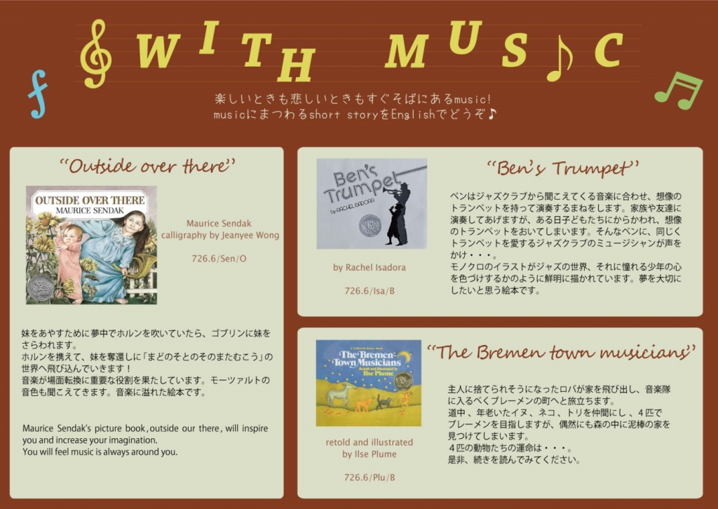 一覧へ 【ポーアイ館】〈終了〉てくてくSelection「WITH MUSIC」を開催しています 投稿日時: 2019/01/07 図書館管理者 てくてくSelectionWITH MUSIC 展示リストはこちら.pdf※ポーアイ図書館2階図書館留学コーナーにて展示しています。