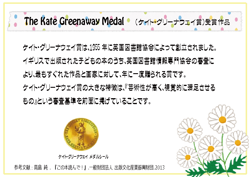 一覧へ 【有瀬館】図書館留学 ケイト・グリーナウェイ賞受賞作品絵本を展示しています 投稿日時: 2014/07/03 図書館管理者 ケイト・グリーナウェイ賞受賞作品絵本を展示しています。※新館1階A にて展示しています。