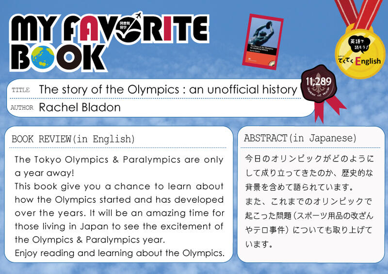 My Favorite Book(安田有紀子先生)The story of the Olympics※ポーアイ図書館2階図書館留学コーナーにて展示しています。※有瀬図書館新館1階A図書館留学コーナーに展示しています。