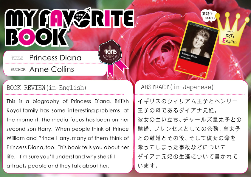 一覧へ 【全館】〈終了〉My Favorite Book「Princess Diana」を開催しています 投稿日時: 2020/02/06 図書館管理者 My Favorite Book(安田有紀子先生)Princess Diana※ポーアイ図書館2階図書館留学コーナーにて展示しています。※有瀬図書館新館1階A図書館留学コーナーに展示しています。