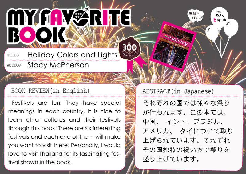 My Favorite Book(安田有紀子先生)Holiday Colors and Lights※ポーアイ図書館2階図書館留学コーナーにて展示しています。※有瀬図書館新館1階A図書館留学コーナーに展示しています。