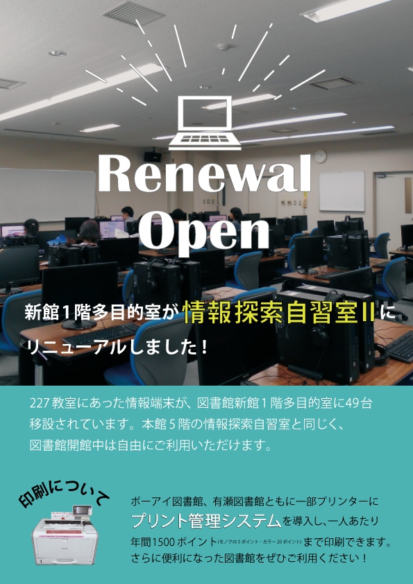 新館1階多目的室が情報探索自習室Ⅱにリニューアルしました!