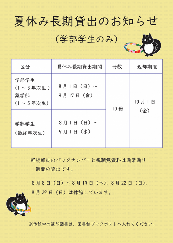 【全館】夏休み長期貸出のお知らせ(学部学生のみ)