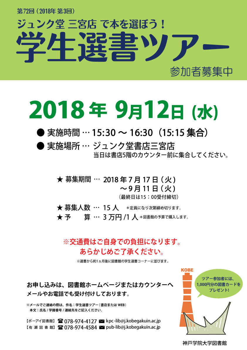 第72回(2018年第3回)学生選書ツアー参加者を募集しています。