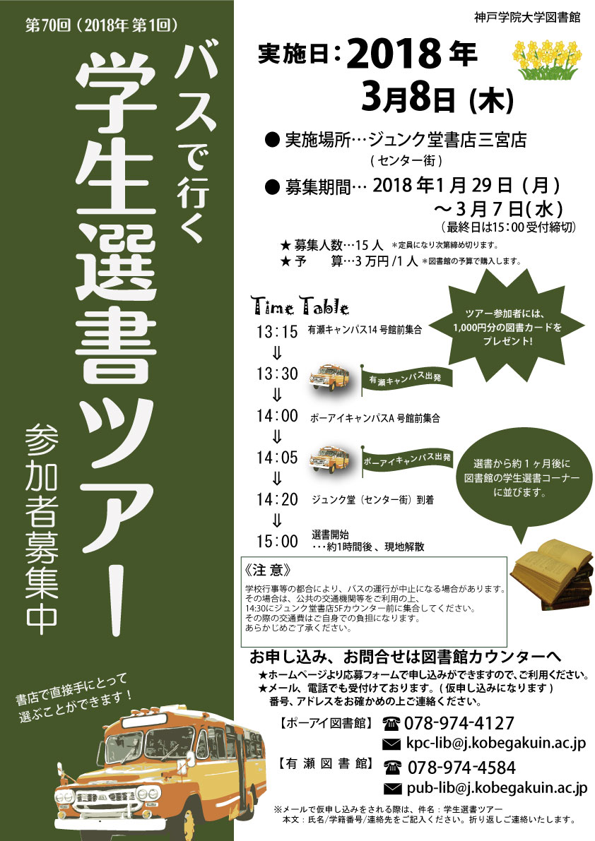 第70回(2018年第1回)学生選書ツアー参加者を募集しています。