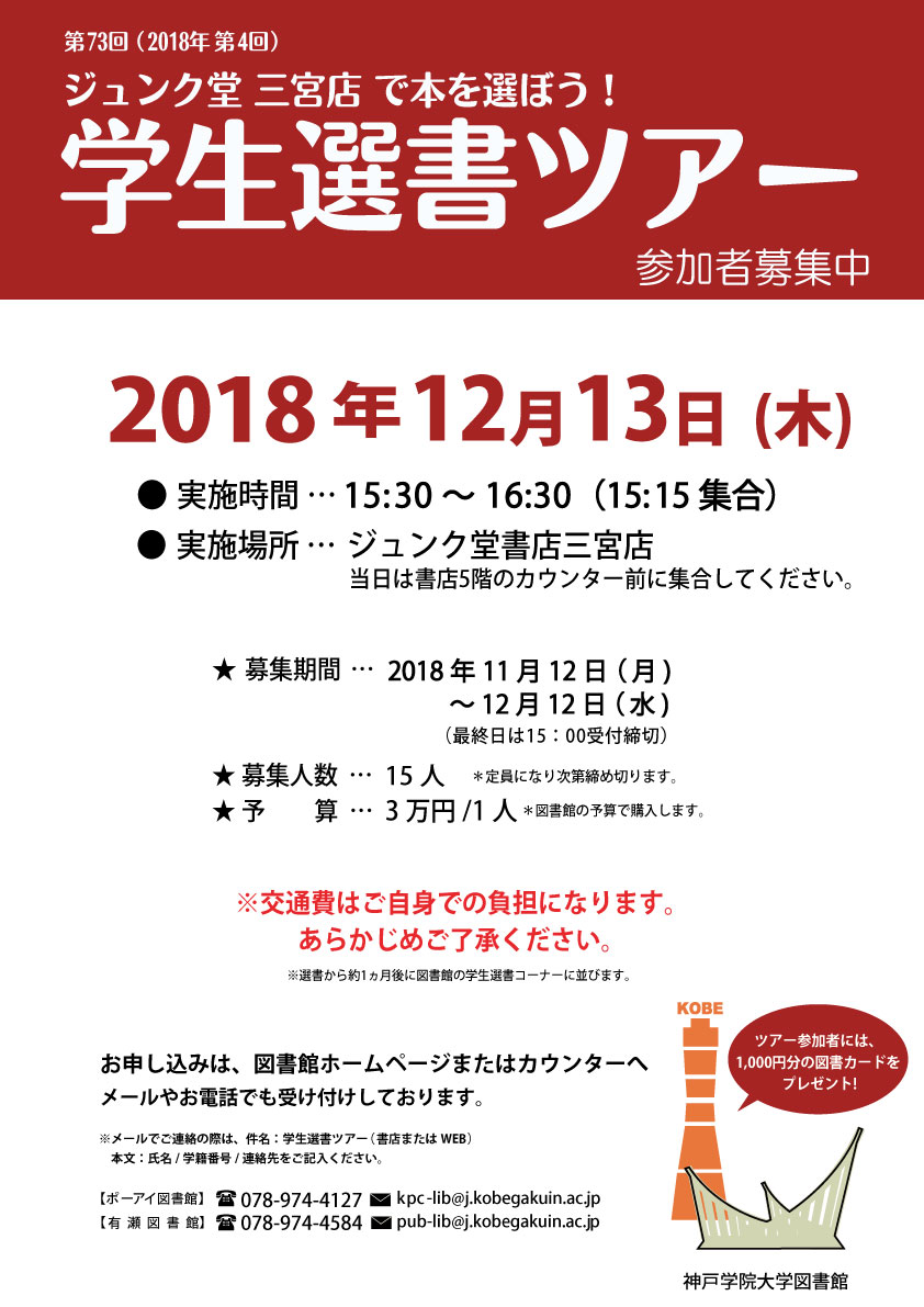 第73回(2018年第4回)学生選書ツアー参加者を募集しています。