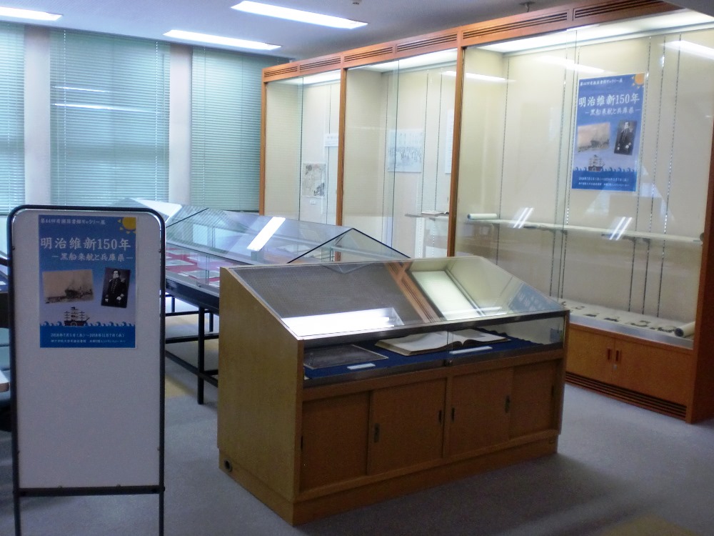今回のギャラリー展では、「明治維新150年-黒船来航と兵庫県-」と題して、黒船来航についての絵巻である『金海奇観 原装影印版』をはじめ、『明治期着色写真「神戸」』など、幕末から明治初期に関する資料を展示しています。これらの資料は普段、貴重書や閉架資料として閲覧が制限されているものです。この機会にぜひ御覧ください。