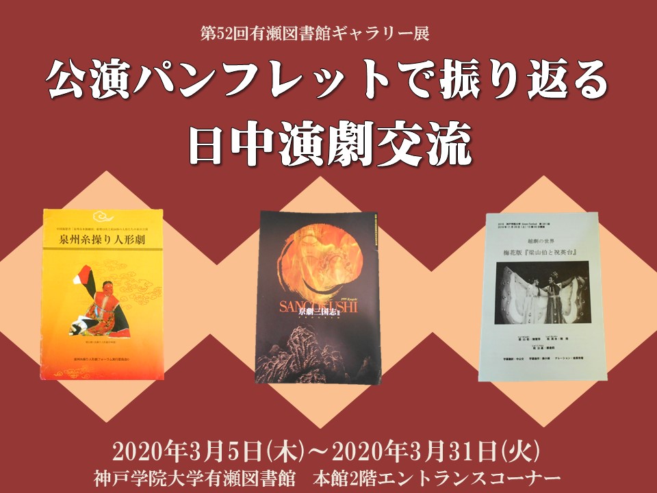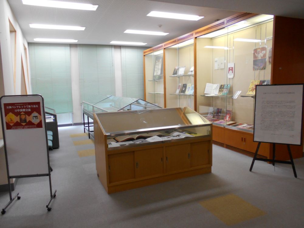 今回のギャラリー展は、グローバル・コミュニケーション学部森平先生が人文学部教授伊藤茂先生のご退職に伴い、伊藤先生のコレクションの一部を展示しました。伊藤先生は1978年より42年間本学にて尽力されました。その期間は、先生の中国演劇の観劇及び交流の期間とほぼ重なっています。そこで今回の展示では長年にわたり観劇し、収蔵されてきた中国演劇の公演パンフレットの一部を展示し、日本と中国の演劇交流の歴史を振り返りたいと思います。伊藤茂先生の他、中国演劇研究者・杉山太郎先生及び、演劇人・山崎理恵子氏が収蔵されていた貴重な公演プログラムも併せて展示しています。普段みることのできない大変貴重な資料ですので、この機会に是非ご覧ください。