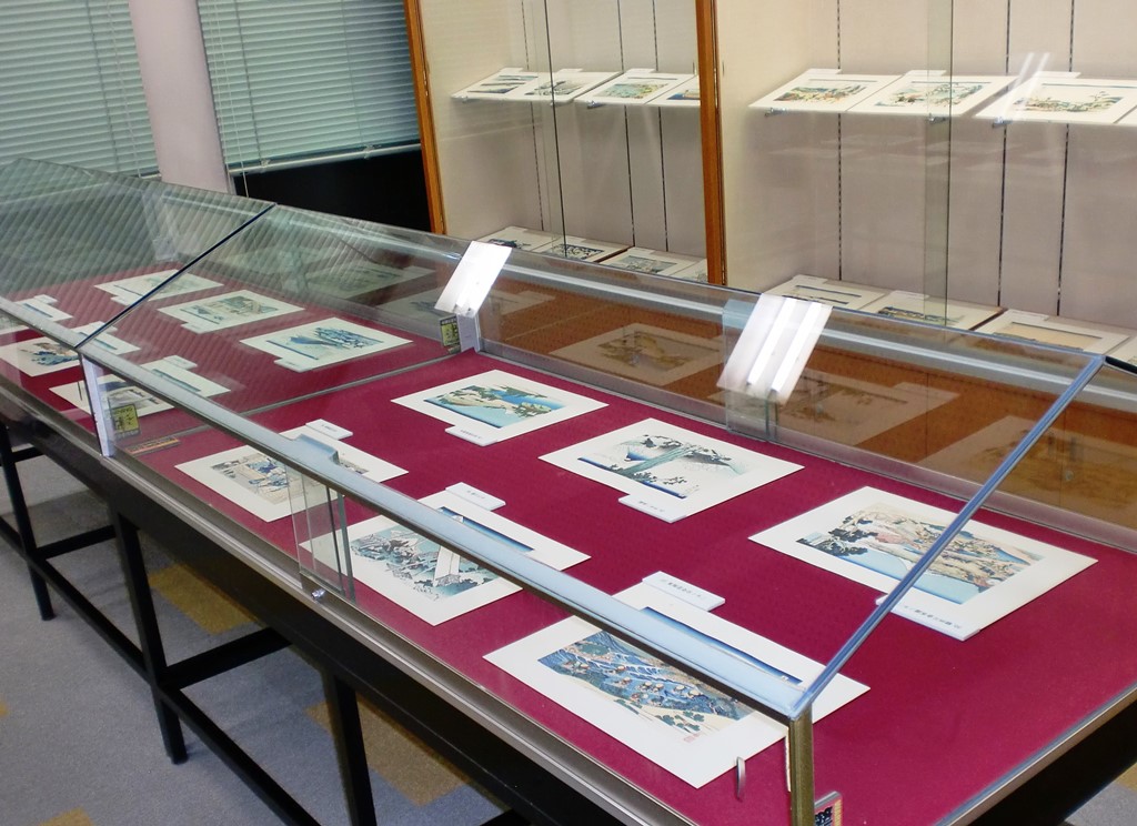 今回の有瀬図書館ギャラリー展では、江戸後期に活躍した浮世絵師・北斎の「富嶽三十六景」全46図を展示しています。「富嶽三十六景」では、赤富士と称される「凱風快晴」や、巨大な波が印象的な「神奈川沖浪裏」といった富士の風景のほかにも、そこに暮らす人々が活き活きと描かれています。北斎が実際に歩き、見た、富士の景色をお楽しみいただくとともに、当時の人々の暮らしにも注目してご覧ください。