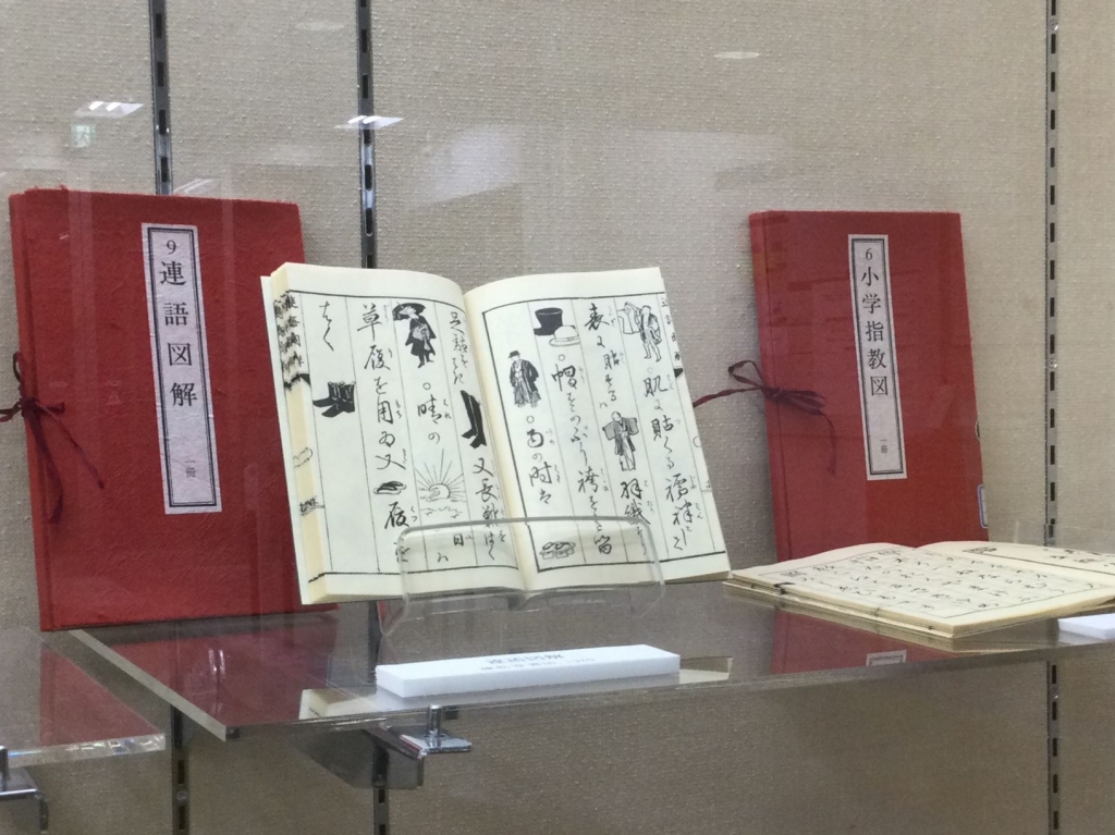 今回のギャラリー展では、明治期に学校教育で使用されていた「教育入門書(教科書)」を展示しています。明治維新が起きたころ、政府は「富国強兵」をスローガンに掲げ、教育制度や内容の近代化を進めました。その結果、明治の終わりには小学校の義務化が実現し、男女平等に教育を受けることができるようになりました。そしてこの明治時代の教育制度は、現在の学校制度の基盤となりました。今回は、いろは図・単語図・色之図などの教材から、教員養成機関であった「師範学校」で使用されたものまで幅広く集めました。また、戦後の占領軍指令(GHQ)により停止され、社会科の発足により廃止された、道徳教育の前身と言われる「修身教育」の貴重な資料もあわせて展示しています。これらの資料は普段、閉架資料として閲覧が制限されているものです。この機会にぜひ御覧ください。