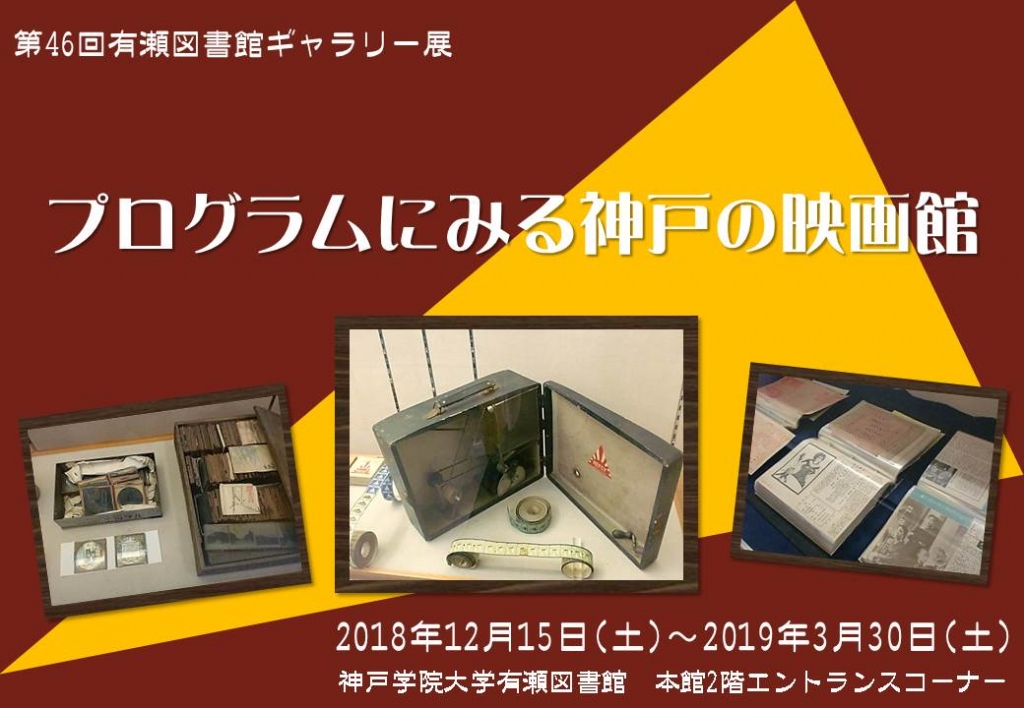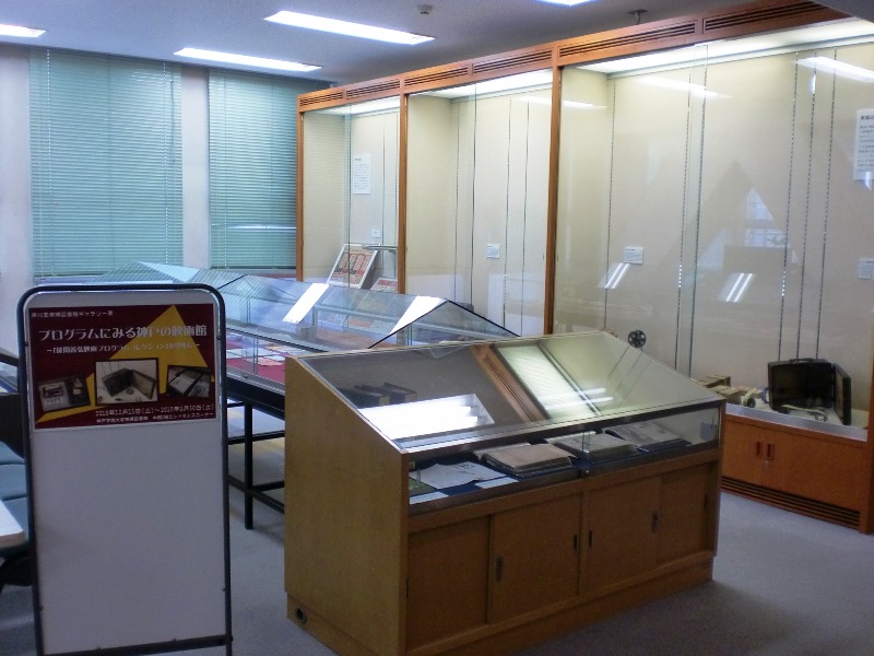 今回のギャラリー展では、人文学部の上田先生による企画展示「プログラムにみる神戸の映画館」を行っています。