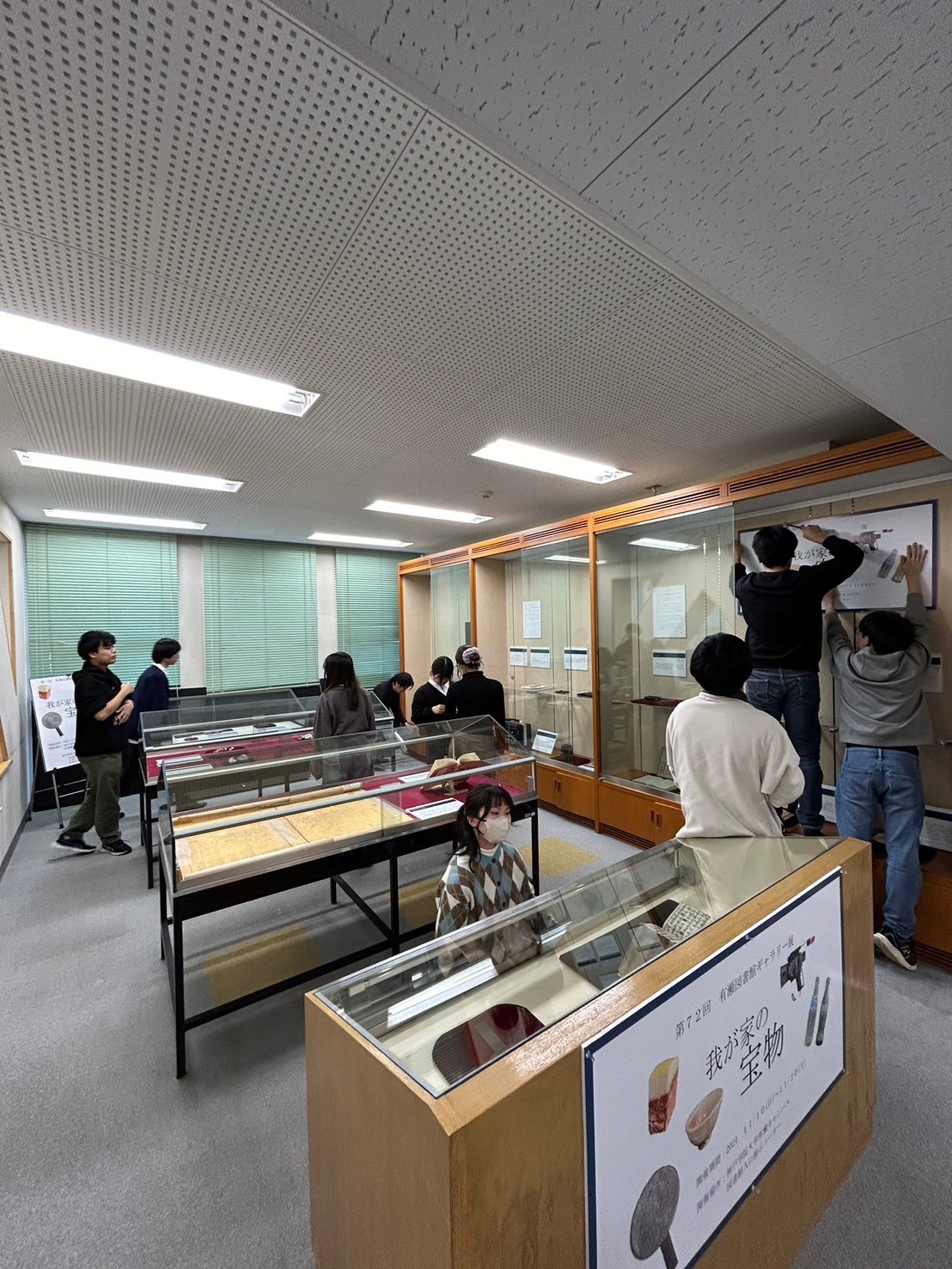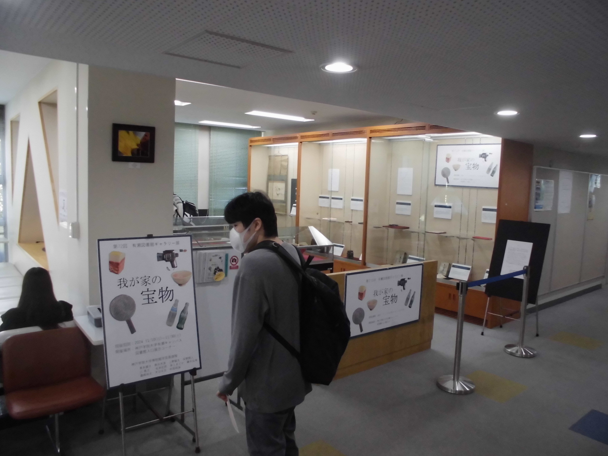 博物館学芸員課程の博物館実習Ⅰ(3年次生)の受講生が、有瀬図書館本館2階エントランスにおいて、