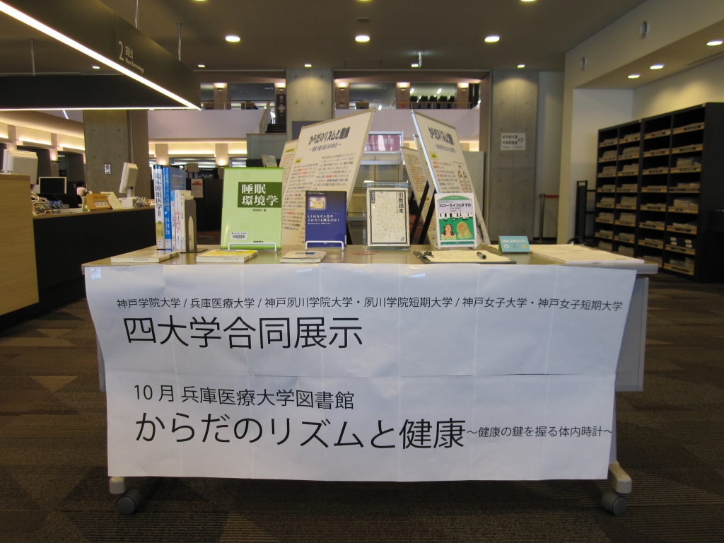 今回こちらで展示するのは、兵庫医療大学図書館の「からだのリズムと健康~健康の鍵を握る体内時計~」です。