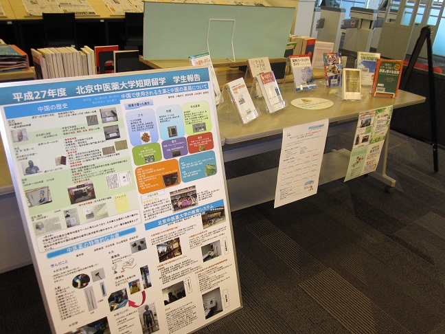 今回こちらで展示するのは、兵庫医療大学図書館の「国際医療交流 ~北京中医薬大学とアデレード大学~」です。