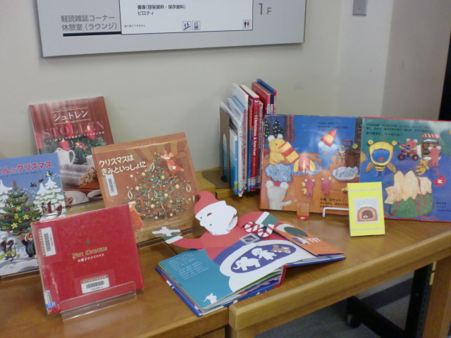 図書館でもクリスマスにまつわる本やこの時期に読みたい本を集めました。