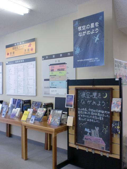 徐々に日も短くなり、秋の気配を感じる季節になってきました。今回図書館では「夜空の星」をテーマに、星座や宇宙などの自然科学の分野から神話や星を題材にした小説など、いろんな資料を集めてみました。秋の夜長。ぜひ手にとって夜空を楽しんでみませんか。