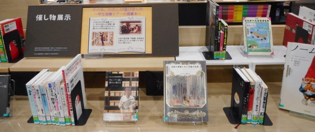 これまでの学生選書ツアーで選ばれた本の一部を集めました。小説や歴史書、写真集、料理本など幅広いジャンルの本が揃っています。学生目線で選ばれた本の中から、お気に入りの一冊を探してみませんか。