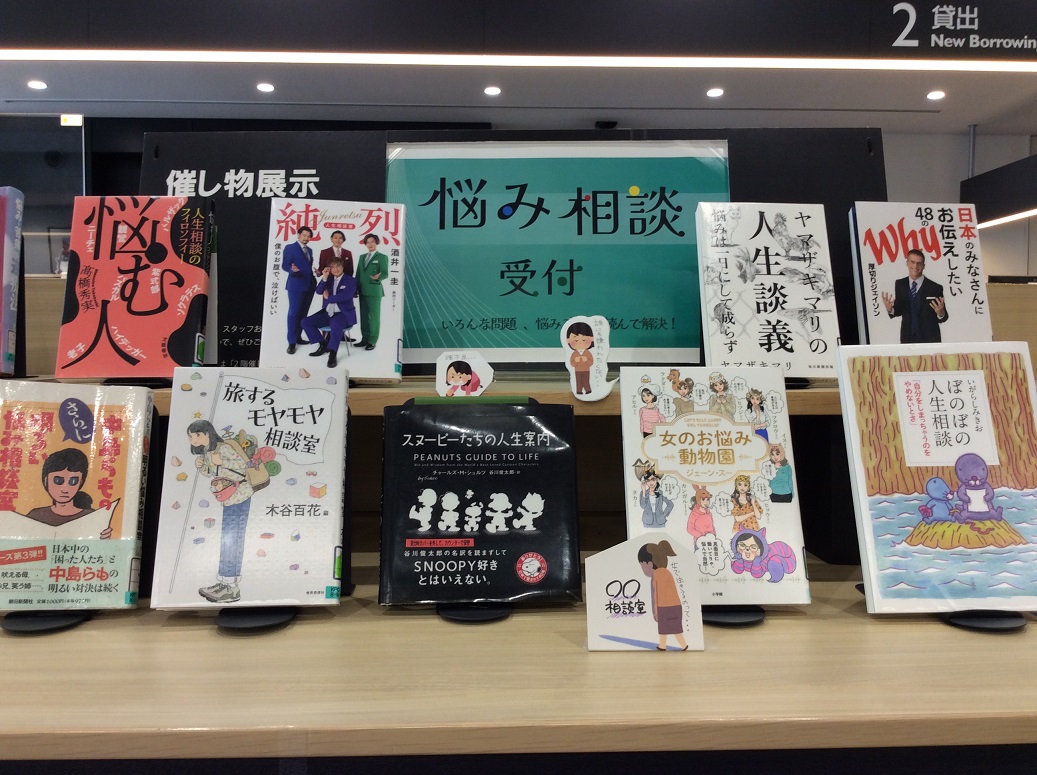 第90回ミニ展示悩み相談受付 ~いろんな問題、悩みごと、読んで解決!~ 期間:2024年8月~9月 心と身体の悩みに関する本はもちろん、ネットセキュリティから古典名作まで幅広くお役に立ちそうな本を集めました。 あなたの悩みも読んでサクッと解決できちゃうかも。 ◆催し物展示コーナーは、ポーアイ館2階カウンター前に設置しています。