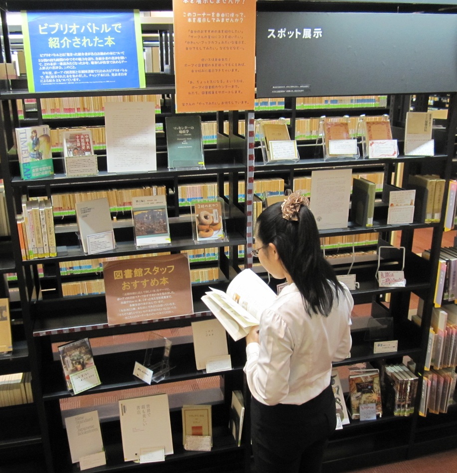 1-3月のスポット展示は、「ビブリオバトルで紹介された本」と「図書館スタッフおすすめ本」の2つのテーマで展示しています。
